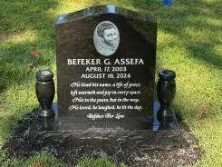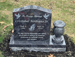 We have thousands of single headstone and double headstone designs to choose from. You can even personalize the single or double gravestone by adding special artwork, phrases of endearment and/or pictures of your loved one to create a one-of-its-kind design.